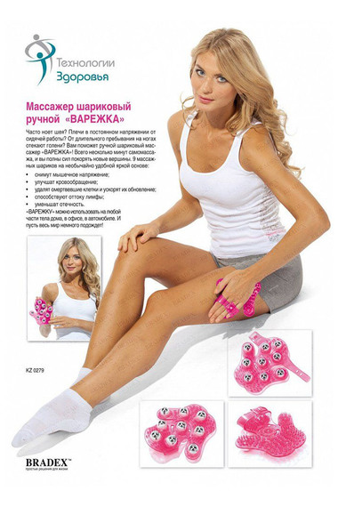 Яркий шариковый массажер «ВАРЕЖКА» облегчает последствия тяжелых трудовых будней, напряженной тренировки или долгой прогулки на каблуках — он в два счета приведет уставшие, отекшие и проблемные участки тела в порядок!